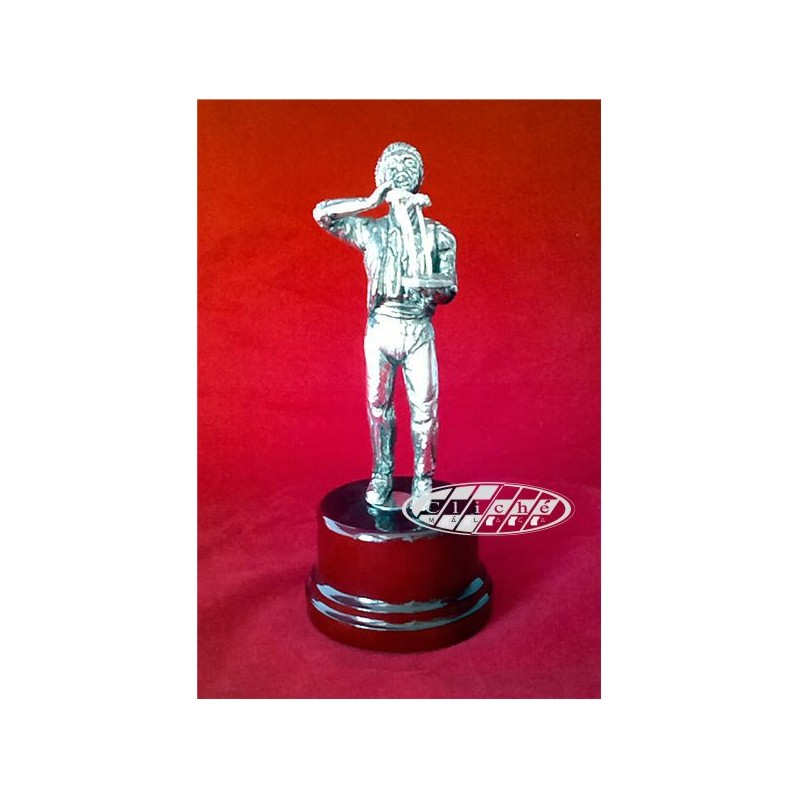 EL BIZNAGUERO DE MÁLAGA DE BRONCE con BAÑO DE PLATA sobre peana de madera. Reproducción artesanal.