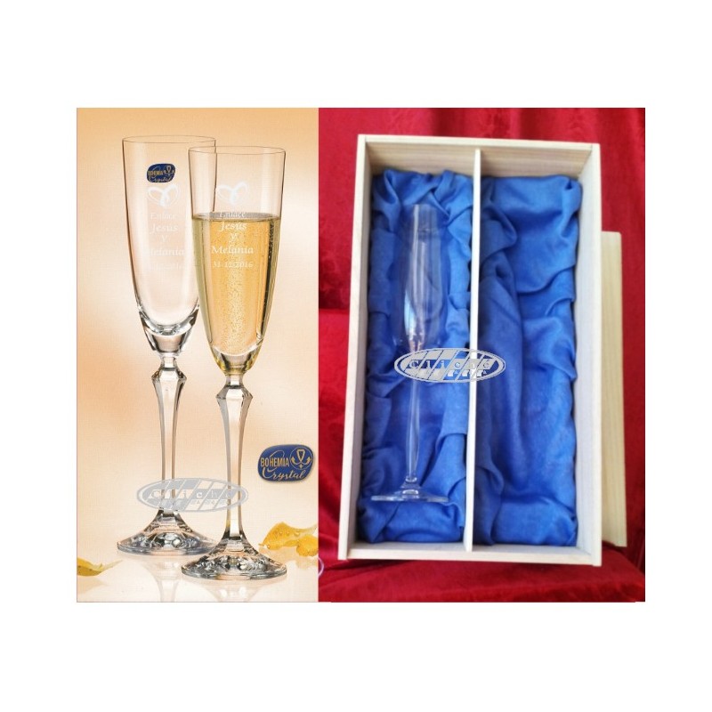 COPAS DE CHAMPÁN GRABADAS C/ ESTUCHE MADERA