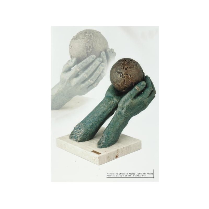Escultura Ofrezco el Mundo, una obra arte en cerámica de fabricación española.