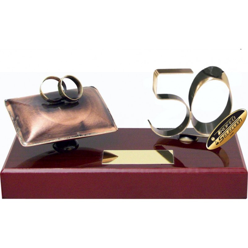 ESCULTURA TROFEO DE ANIVERSARIOS DE LATÓN sobre peana. Un trofeo de calidad, artesanal y original.