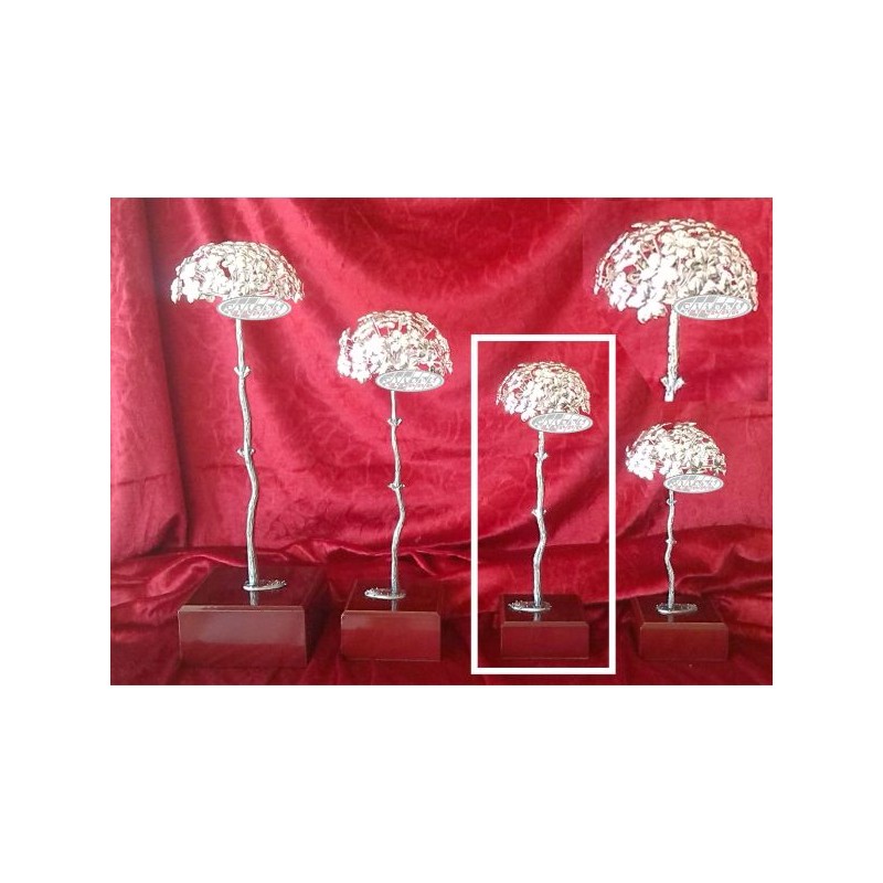 BIZNAGA DE MÁLAGA de alpaca c/ baño de plata sobre peana de madera. Reproducción artesanal.