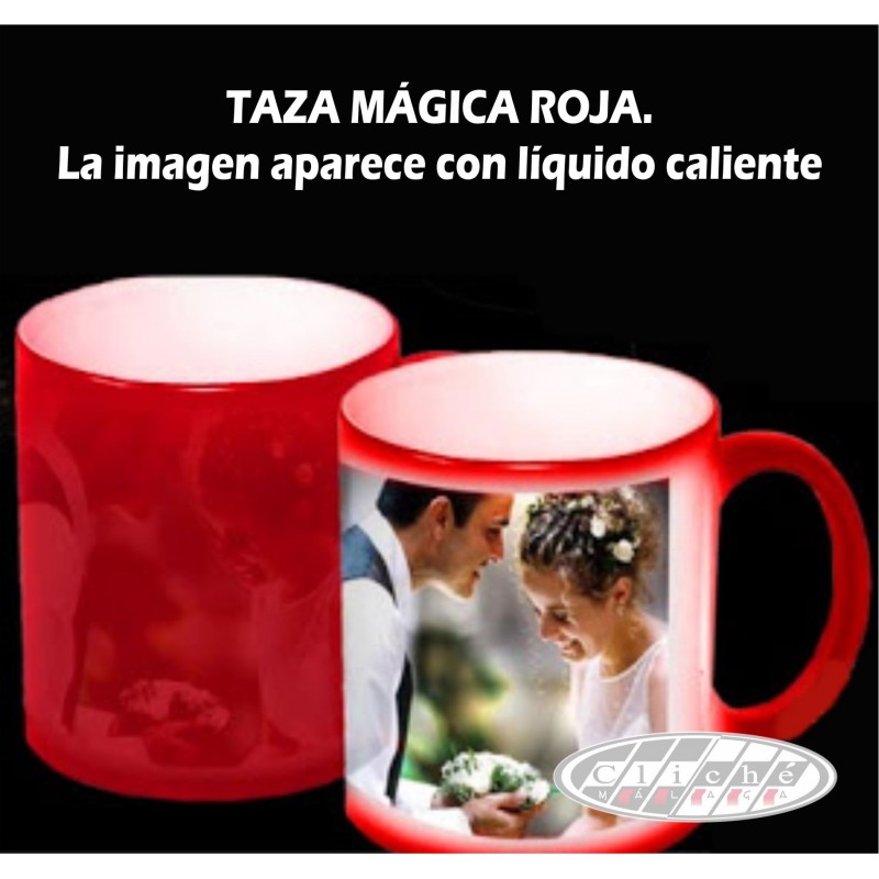 TAZA MÁGICA ROJA PERSONALIZADA DE CERÁMICA.
