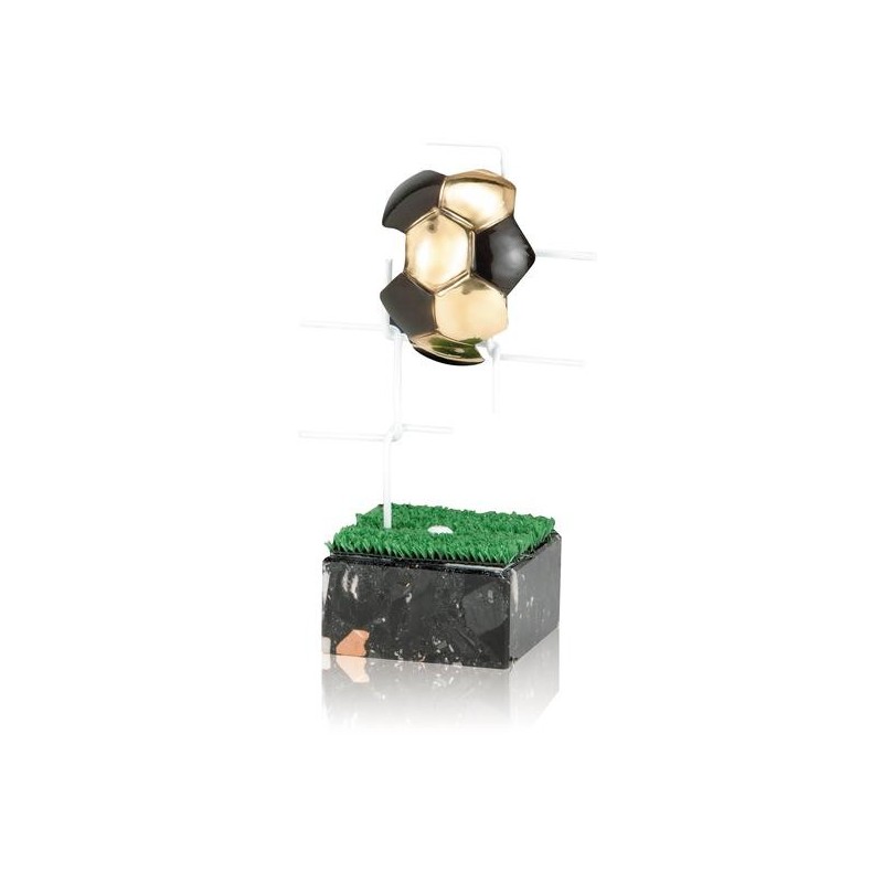 TROFEO DE FÚTBOL DE DISEÑO EN LATÓN sobre peana. Un trofeo de calidad, artesanal y original.