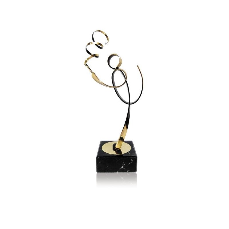 TROFEO DE GIMNASIA DE DISEÑO EN LATÓN sobre peana. Un trofeo de calidad, artesanal y original.