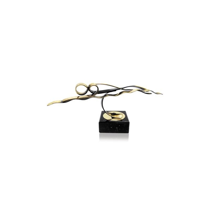 TROFEO DE NATACIÓN DE DISEÑO EN LATÓN sobre peana. Un trofeo de calidad, artesanal y original.