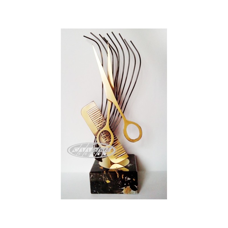 ESCULTURA TROFEO DE PELUQUERÍA DE LATÓN sobre peana. Un trofeo de calidad, artesanal y original.