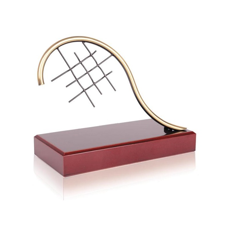 TROFEO DE TENIS DE DISEÑO EN LATÓN sobre peana. Un trofeo de calidad, artesanal y original.