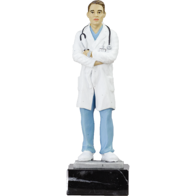 Trofeo de resina pintado a mano de Doctor o Médico como trofeo o regalo. Montado sobre peana de mármol.
